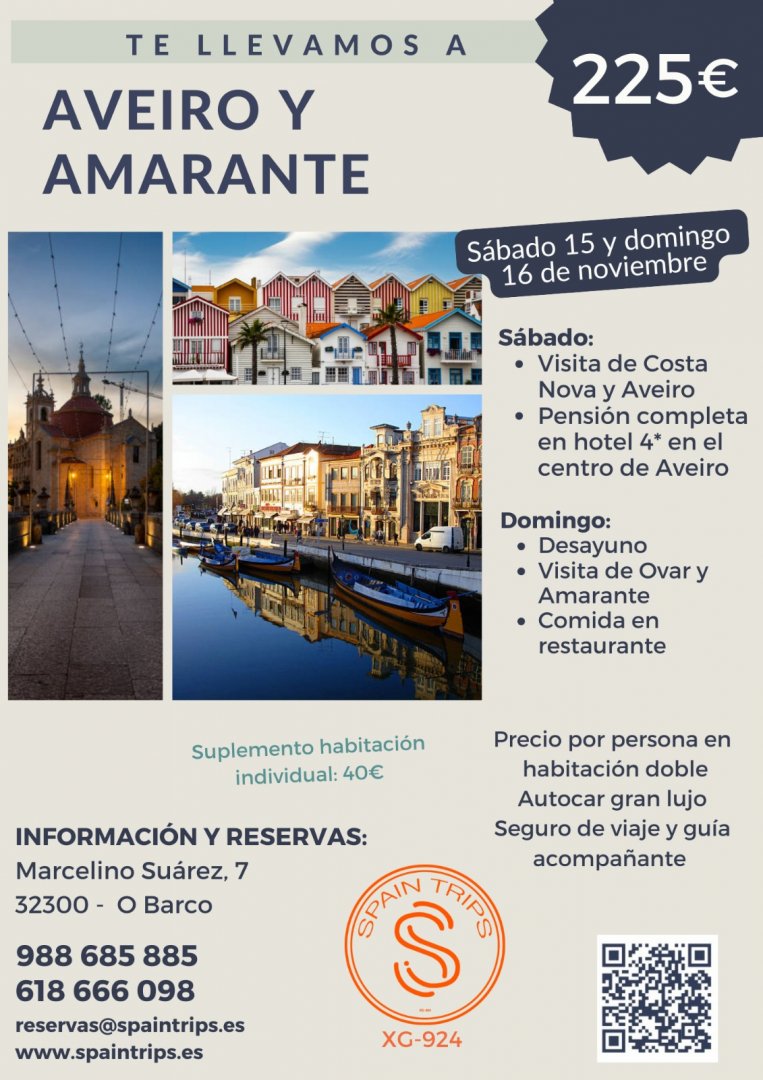 - Visitas de Costa Nova, Aveiro, Ovar y Amarante.