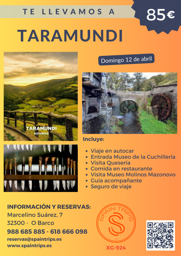 Viaje en autocar el domingo 12 de abril a Taramundi. Entrada al Museo de la Cuchillería. Visita a quesería. Comida en restaurante. Por la tarde, visita del Museo de los Molinos Mazonovo.